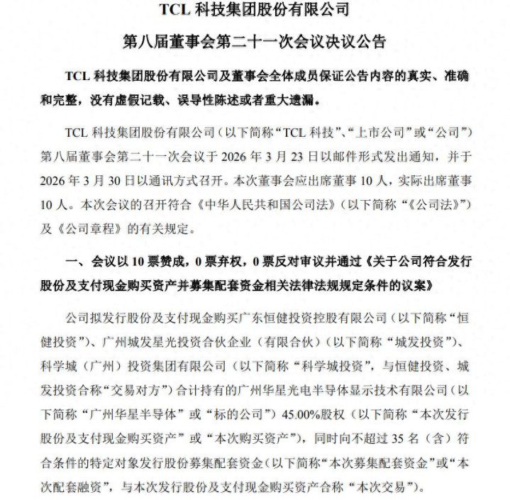 3月30日晚间,TCL科技晓示,策动斥资93.25亿元收购广州华星光电半导体透露时代有限公司(以下简称“广州华星半导体”)45%的股权,以已毕对该子公司的全资控股。