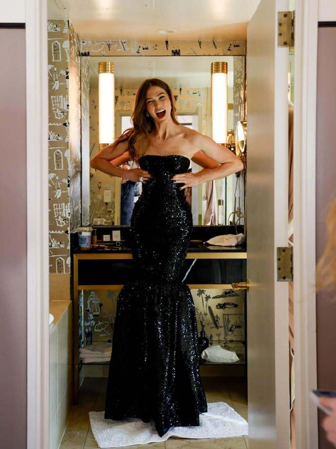 Karlie Kloss奥斯卡名利场派对,凤凰彩票首页江南体育Gucci的玄色亮片裙和她超等适配!