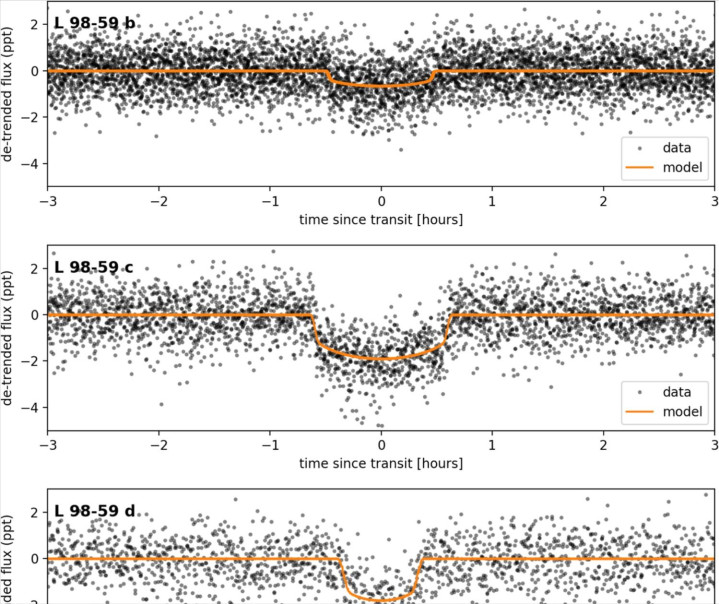L 98-59系统恰是通过这个表率被发现的,这是一个拥堵的红矮星系统,咫尺阐述有五颗行星。