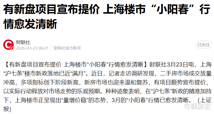 吃饭时刷到一则泰斗媒体的楼市报说念,标题很直白:《二手房3天“闪电”成交 有新盘技俩秘书提价 上海楼市“小阳春”行情愈发赫然》。读完很有感触,本年楼市的热度,照实和往年不太一样,不再是霎时的季节性回暖,而是带着彰着趋势性的变化。