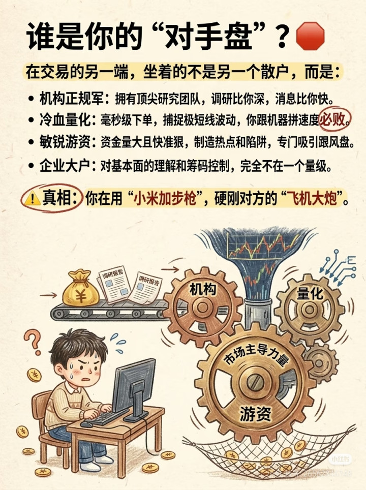 你拿着“小米加步枪”,去跟东说念主家的顶级装备硬刚,不输才怪!今天这篇,把散户的生涯划定讲透,看完少亏10万!