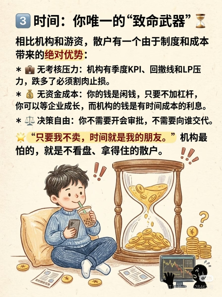 别慌,散户不是莫得上风,咱们有一个机构、量化始终比不了的齐全杀招:时分。