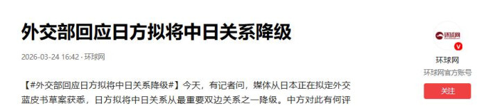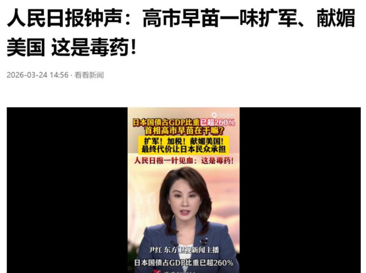 3月24日,东谈主民日报以“钟声”指摘神志发表著述,全面定调中日干系与高市早苗的空虚活动。指摘指出,台湾是中国内务,日本无权进入,一个中国原则是中日干系的政事基石,高市早苗所谓“生死危险事态”的说法齐全违反国际法与国际干系基本准则。