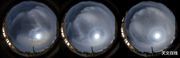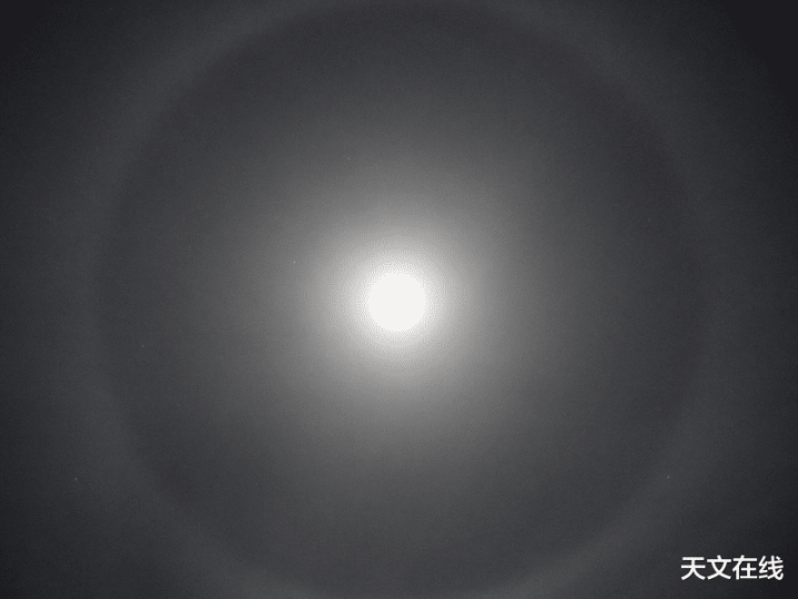 这展示了月晕在约 7 分钟内迟缓线路的历程。随后,月晕不时了约 40 分钟,最终因云层增厚而磨灭。固然看起来月晕似乎从某种不法规花样初始形成,但本色上在月晕出现前,云层正逐步移至月球前哨,此时被照亮的仅仅云 层旯旮。因此,这种不法规花样仅仅云边受光产生的视觉错觉;跟着云层位置变化,月晕迟缓呈现出圭臬的圆形概述。