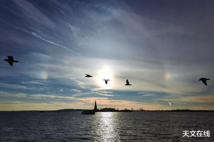 请稽查地球天外社区相片。达里奥贾诺博莱在曼哈顿拍摄了这张相片,并写谈:完好意思的日晕,伴以幻日(俗称 ‘ 假太阳 ’ )、幻日弧和上切弧。谢谢达里奥
