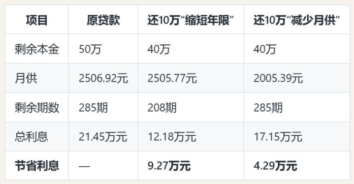 提前还款一般有两种形状:裁汰还款年限和减少每月月供。网上险些一边倒地推选“裁汰年限”,意义是“能省更多利息”。