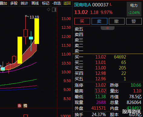 1、电力板块活跃!在电力有关领域,公司是一家以燃机发电为主的企业,主要客户为深圳供电局。在电力板块的带动下,有关个股迎来高涨行情。
