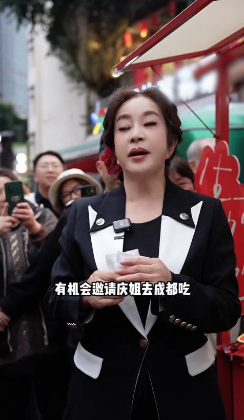 也不知刘女士是怎么想的,尽然作念了一个红色簪花的造型,与身上的衣服酿成了很大的各异,看着稍许有点突兀。