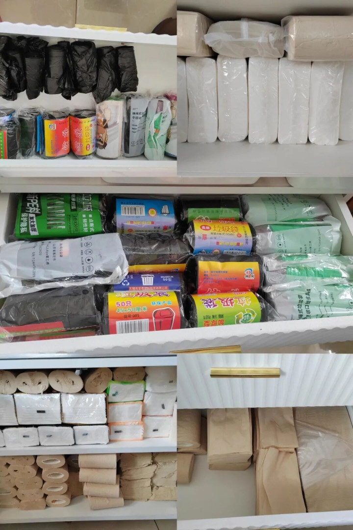 外卖袋、购物袋、塑料袋,只如果袋子,都舍不得扔,总以为以后能用上,简略装垃圾,效能,厨房柜子里,全被这些袋子填满了,东横西倒。