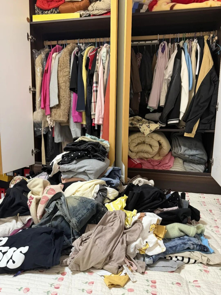 百分之八十的东谈主衣柜里,都堆着一堆3年以上没碰过的穿戴,买的潮水款,看不景况了。小一码穿不了的穿戴。起球、变形、脱色的穿戴。总以为“在家穿穿也行”,效能等于占着衣柜空间,每次找穿戴都得翻半天。