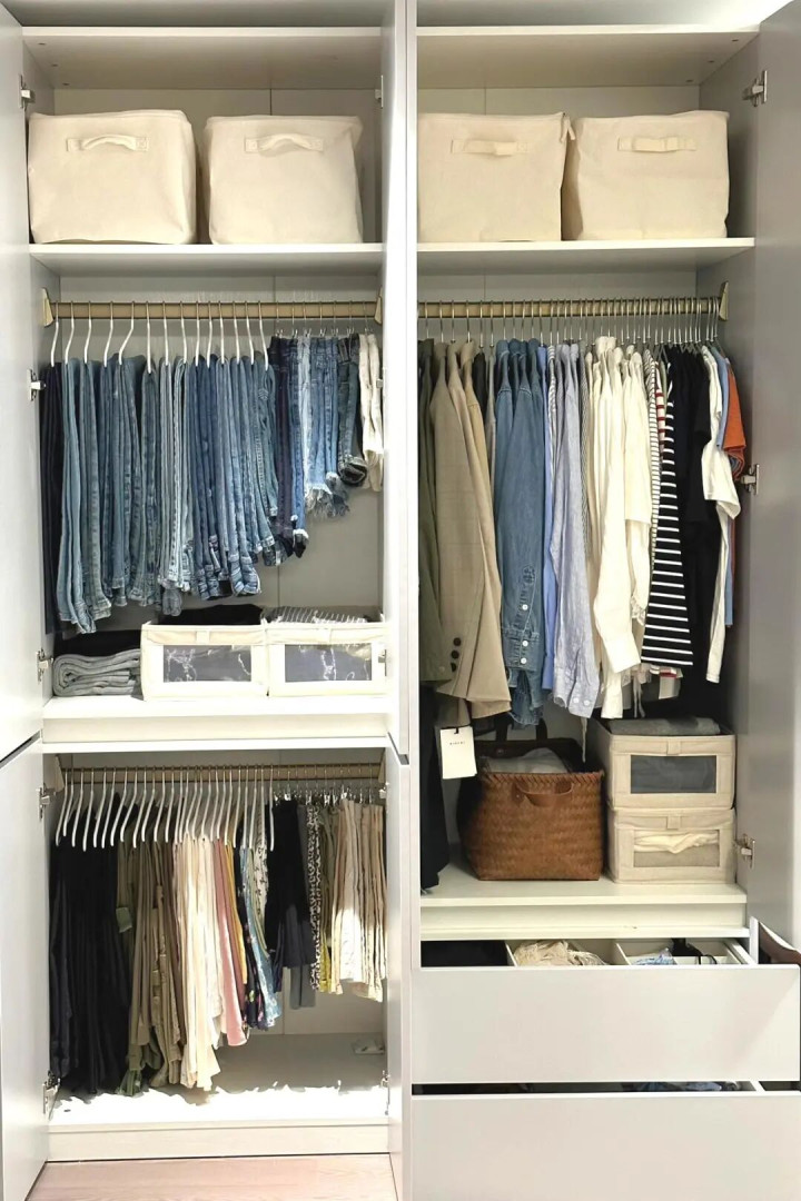 我当初计帐衣柜,旧穿戴装了三大袋,扔完之后,衣柜蓦地空了一半,穿戴都挂起来,不消再翻来翻去,搭配起来定心多了。