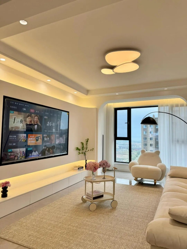 松弛把大茶几扔了,换个工致的边几,能随时转移,思用的时分拉到沙发中间,不消的时分就推到边缘,客厅蓦地多出几平米的旷地,家里蓦地显大许多,换过的真后悔没早点换!